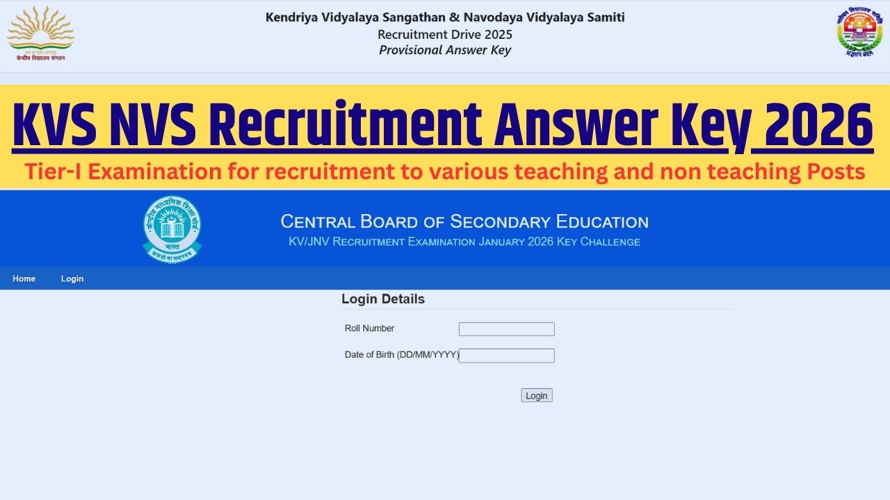 KVS NVS Various Post Answer Key 2026: नवोदय, केंद्रीय विद्यालय भर्ती परीक्षा आंसर-की यहां से चेक करें