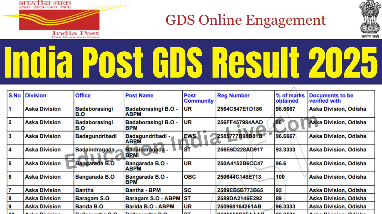 India Post GDS Result 2025 Out: यहां से चेक करें इंडिया पोस्ट जीडीएस का रिजल्ट