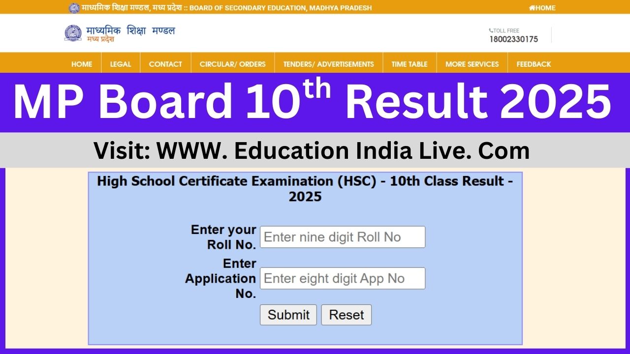 MP Board 10th Result 2025: मध्यप्रदेश माध्यमिक शिक्षा मंडल (MPBSE) द्वारा आयोजित हुई 10वीं की परीक्षा के परिणाम को लेकर खुशखबरी है. एमपी बोर्ड 10वीं का रिजल्ट 6 मई 2025 को सुबह 10 बजे जारी हो गया है. आपकी सुविधा हेतु हमनें नीचे रिजल्ट चेक करने का डायरेक्ट लिंक दे दिया है, जो कि 6 मई 2025 को सुबह 10 बजे एक्टिवेट हुआ है.
