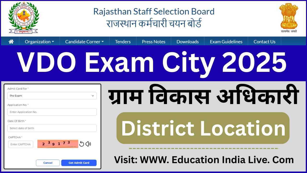 VDO Exam City 2025: राजस्थान कर्मचारी चयन बोर्ड द्वारा आयोजित होने वाली ग्राम विकास अधिकारी यानि वीडीओ भर्ती परीक्षा 2025 की एग्जाम सिटी को लेकर खुशखबरी है. कर्मचारी चयन बोर्ड ने आज 28 अक्टूबर 2025 को वीडीओ एग्जाम सिटी जारी कर दी है. आपकी सुविधा के लिए हमनें नीचे एग्जाम सिटी चेक करने का डायरेक्ट लिंक दे दिया है.