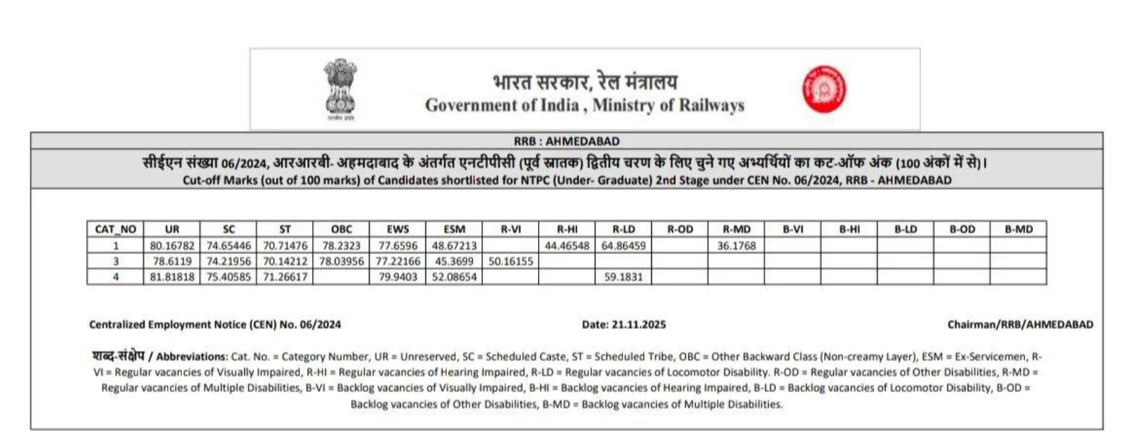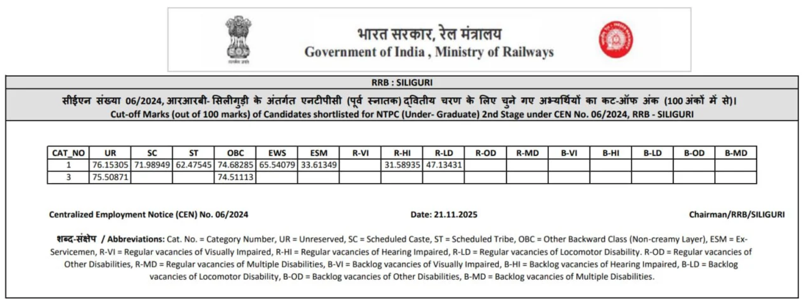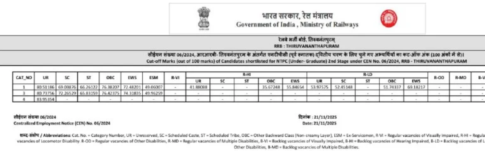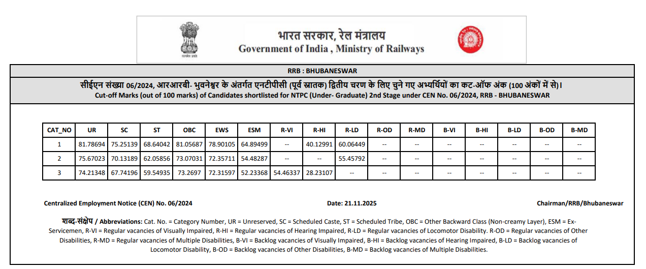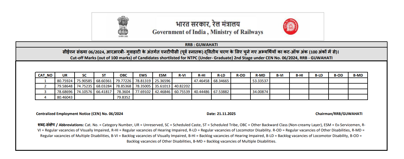 Ans. आरआरबी एनटीपीसी यूजी रिजल्ट आज 21 नवंबर 2025 को आ गया है.