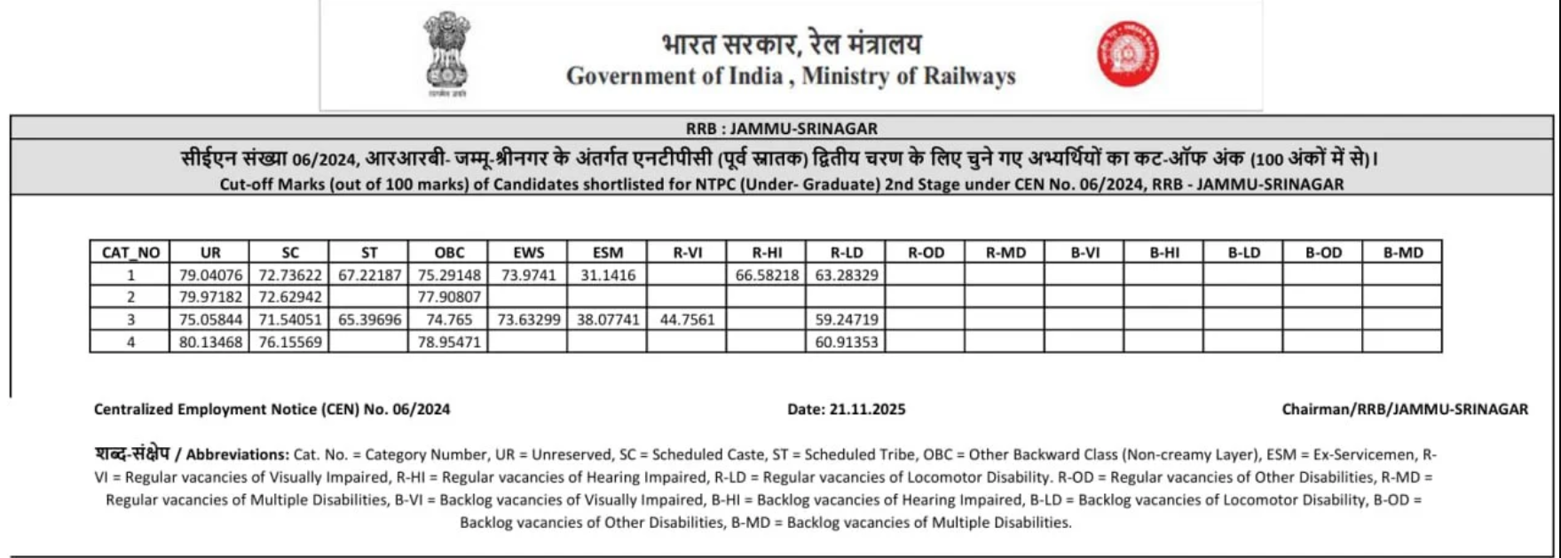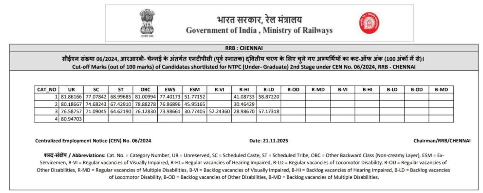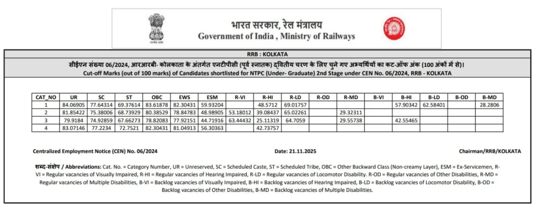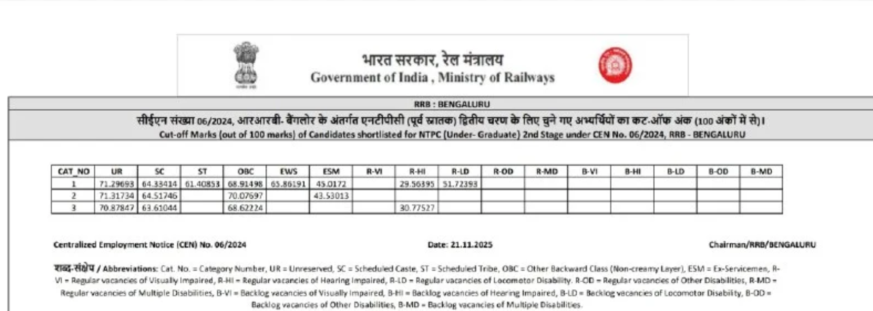 Ans. आरआरबी एनटीपीसी यूजी रिजल्ट आज 21 नवंबर 2025 को आ गया है.