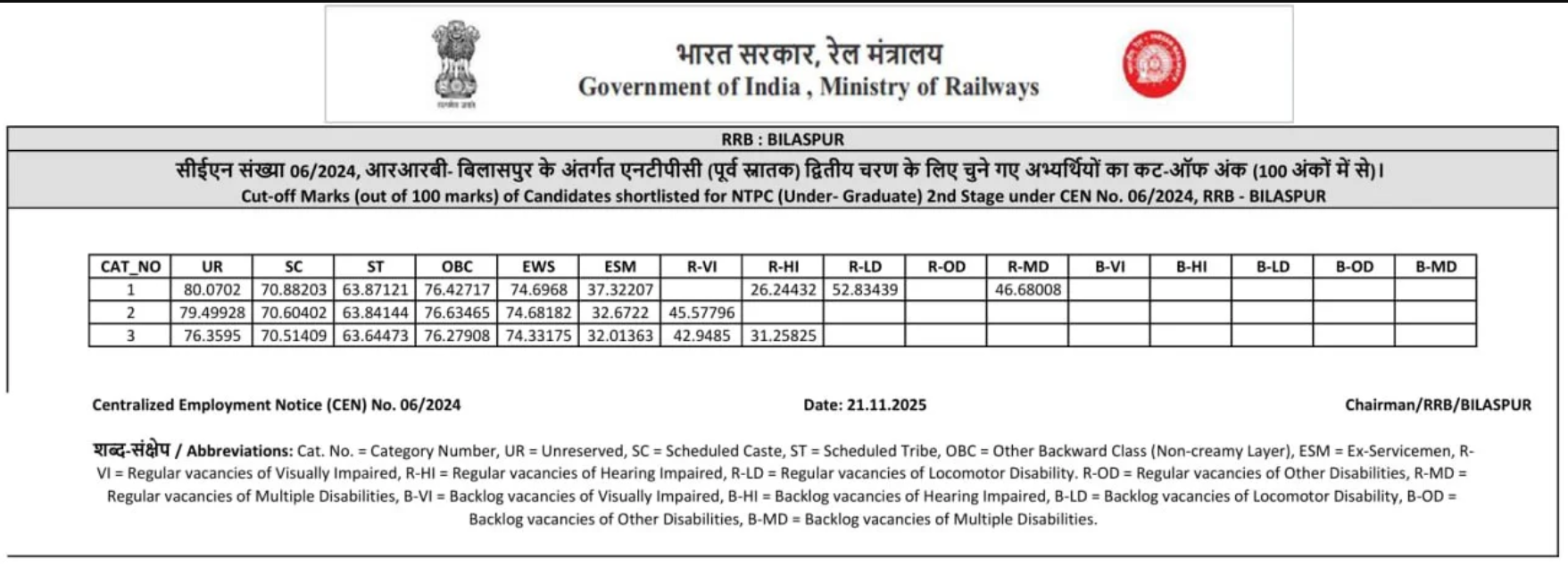 | Bilaspur | Result PDF | Cut Off |