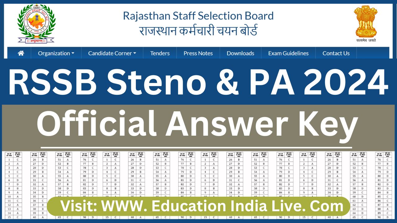 Steno & PA Answer Key 2024: राजस्थान कर्मचारी चयन बोर्ड यानि आरएसएसबी द्वारा निकाली गई स्टेनोग्राफर और पर्सनल असिस्टेंट के पदों पर भर्ती की आंसर की का इंतजार कर रहें कैंडिडेट्स के लिए गुड न्यूज है. आरएसएसबी द्वारा स्टेनो और पीए की परीक्षा गत 5 अक्टूबर को संपन्न हुई थी, जिसकी आंसर की आज 6 नवंबर 2024 को रिलीज की गई है. आंसर की का डायरेक्ट लिंक नीचे दे दिया गया है.