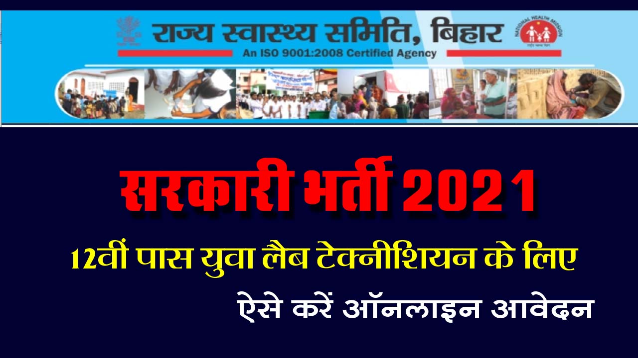 बिहार राज्य के उन बेरोजगारों के लिए सरकारी नौकरी पाने का सुनहरा मौका है. जिन्होंने 12वीं साइंस में कर रखी हो. तो दोस्तों आपको बता दें कि राज्य स्वास्थ्य समिति बिहार ने लैब टेक्नीशियन के पदों पर भर्ती निकाली है. इसके लिए आप भी आवेदन करना चाहते हैं तो यह खबर पूरी पढ़ें.