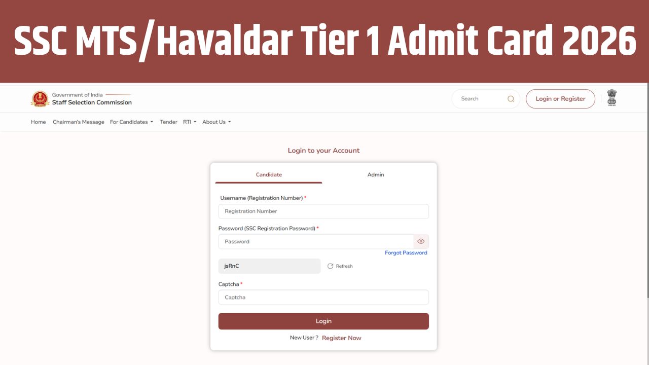 SSC MTS Admit Card 2026 Links: कर्मचारी चयन आयोग (SSC) द्वारा मल्टी टास्किंग स्टाफ और हवलदार भर्ती परीक्षा टियर-1 का एडमिट कार्ड 02 फरवरी को जारी कर दिया गया है. SSC MTS/Havaldar Tier 1 Admit Card 2026 Official Website-ssc.gov.in पर अपलोड किए गए हैं. एडमिट कार्ड डाउनलोड करने का लिंक यहां दे दिया गया है. अभ्यर्थी अपना एडमिट कार्ड एप्लीकेशन नंबर और डेट ऑफ बर्थ की मदद से डाउनलोड कर सकते है.