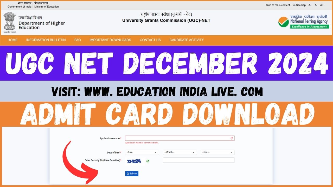 यूजीसी नेट दिसंबर 2024 सेशन की परीक्षा का प्रवेश-पत्र ऑफिसियल वेबसाइट- ugcnet.nta.ac.in पर जारी हुआ है. एडमिट कार्ड को उम्मीदवार एप्लीकेशन नंबर और जन्म तिथि की सहायता से डाउनलोड कर सकते है.