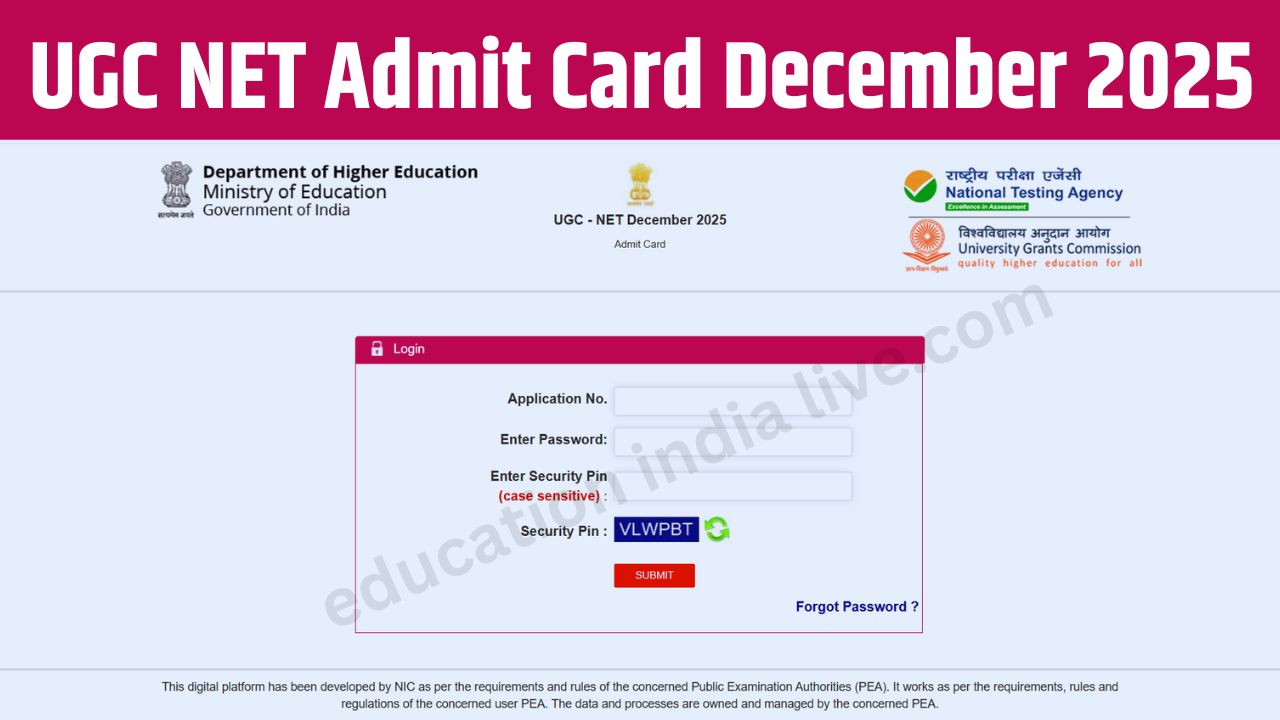 UGC NET Admit Card December 2025 Download: नेशनल टेस्टिंग एजेंसी (NTA) ने वर्ष 2025 के लिए दिसंबर सेशन की आयोजित होने वाली राष्ट्रीय पात्रता परीक्षा (यूजीसी नेट) का प्रवेश पत्र 27 दिसंबर को जारी कर दिया है. UGC NET December 2025 Admit Card Official Website- ugcnet.nta.nic.in पर अपलोड किए गए हैं. एडमिट कार्ड डाउनलोड करने के लिए यहां डायरेक्ट लिंक दे दिया गया है. अभ्यर्थी अपना एडमिट कार्ड एप्लीकेशन नंबर और पासवर्ड की मदद से डाउनलोड कर सकते हैं.